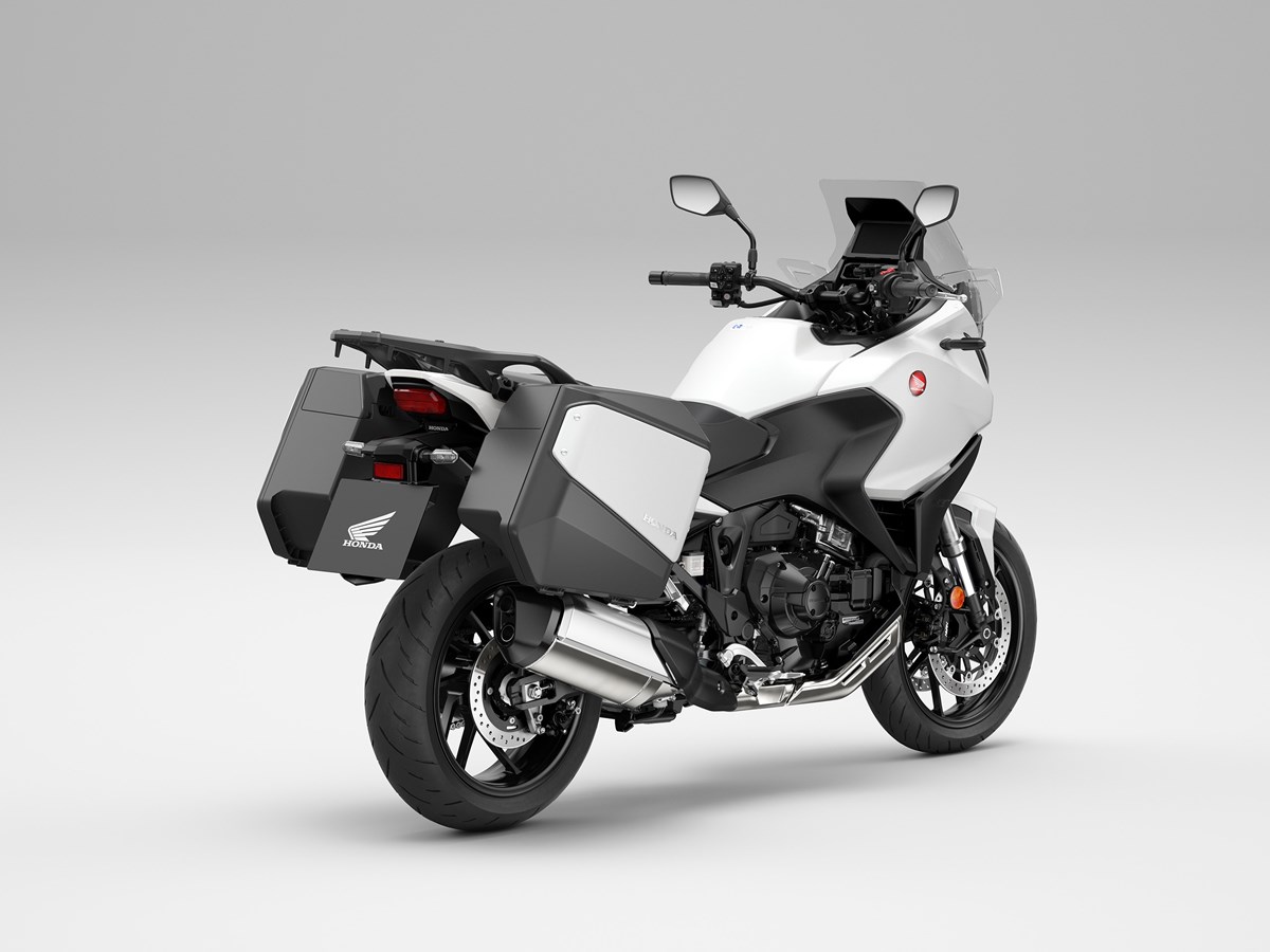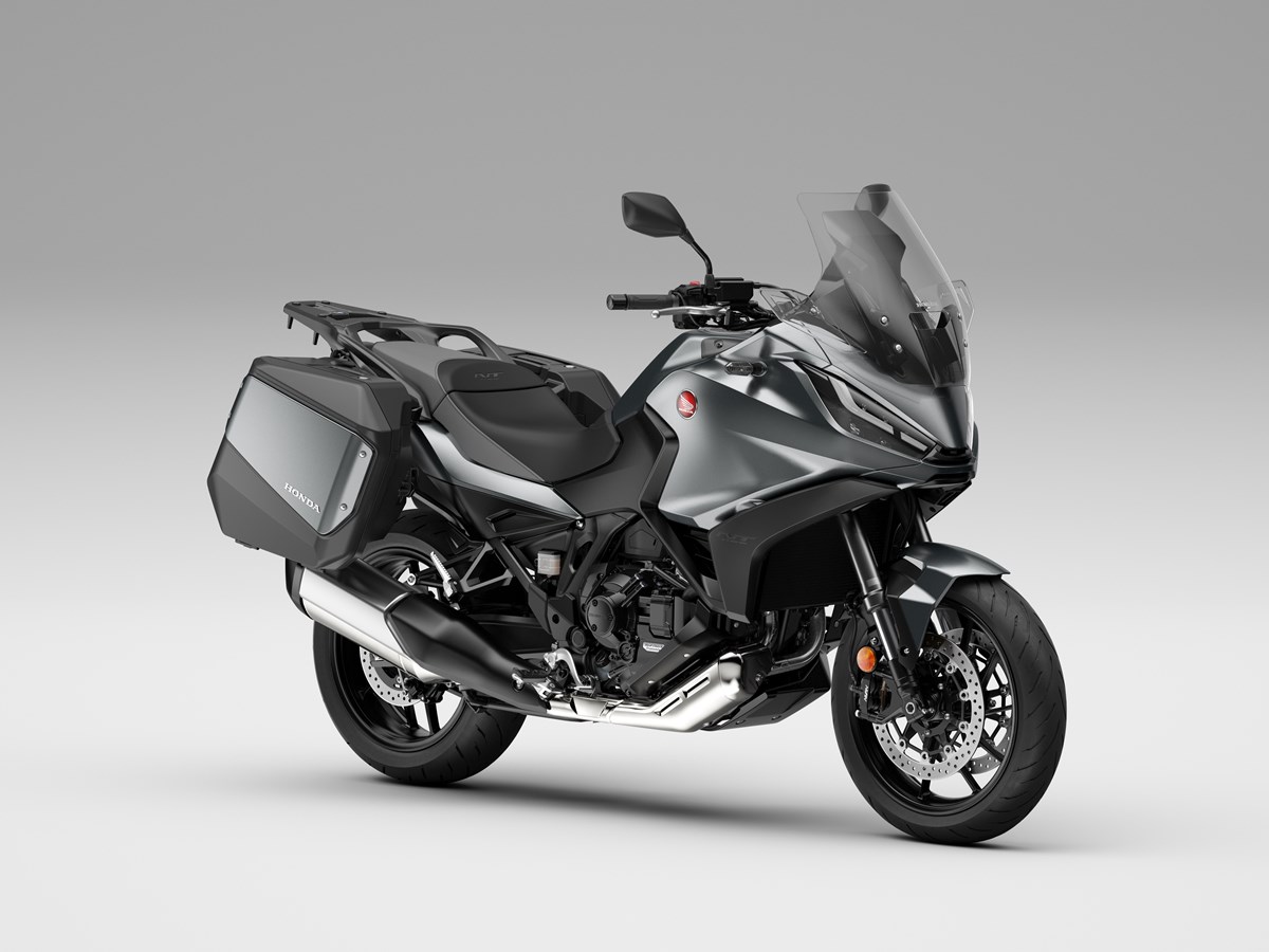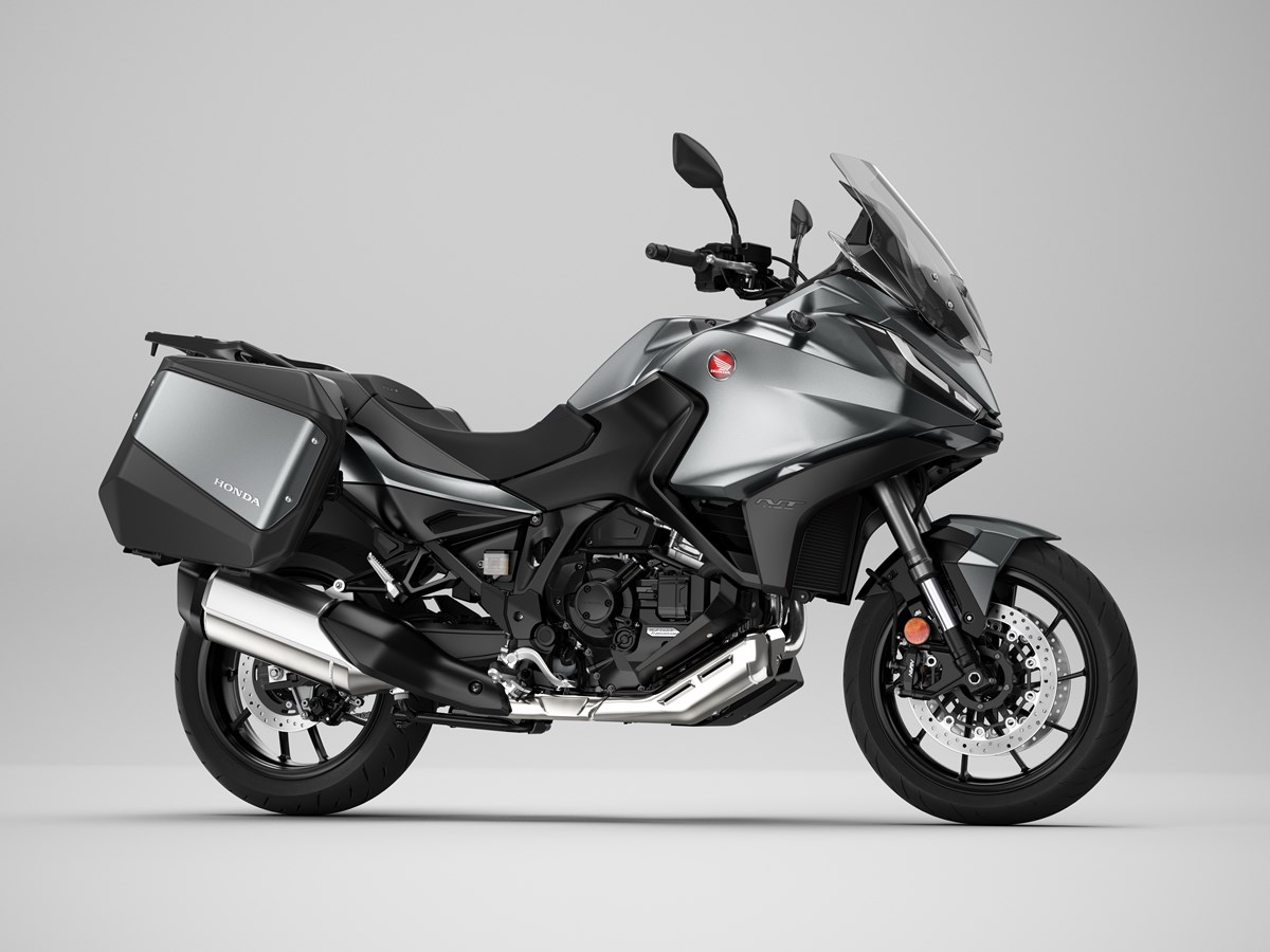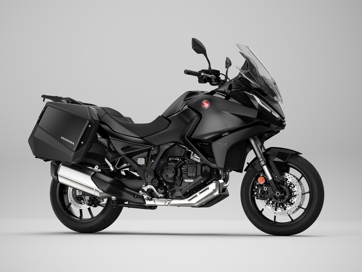 Una nueva generación de Honda tourer hace su debut. Tomando el corazón de la CRF1100L Africa Twin como punto de partida, la NT1100 aprovecha esta base para ofrecer un comportamiento ágil, cómodo y divertido. Un asiento a baja altura y una geometría de dirección agresiva se combinan con suspensiones de altas especificaciones para crear un conjunto deportivo. La pantalla parabrisas ajustable en altura y ángulo en 5 posiciones y los deflectores de viento superiores e inferiores garantizan la eficiencia aerodinámica a alta velocidad y una excelente protección contra los elementos; el control de crucero viene de serie, así como maletas estrechas y puños calefactables. Las ayudas a la conducción incluyen 3 modos de conducción por defecto y 2 opciones USER personalizables, Control de Tracción Seleccionable Honda (HSTC) y Control de Wheelie. Las pinzas delanteras de cuatro pistones y anclaje radial proporcionan la potencia de frenada y los neumáticos, de 120/70-17 el delantero y 180/55-17 el trasero, el agarre. Una pantalla táctil TFT de 6,5 pulgadas completa unas especificaciones premium y cuenta con conectividad Apple CarPlay® y Android Auto®.