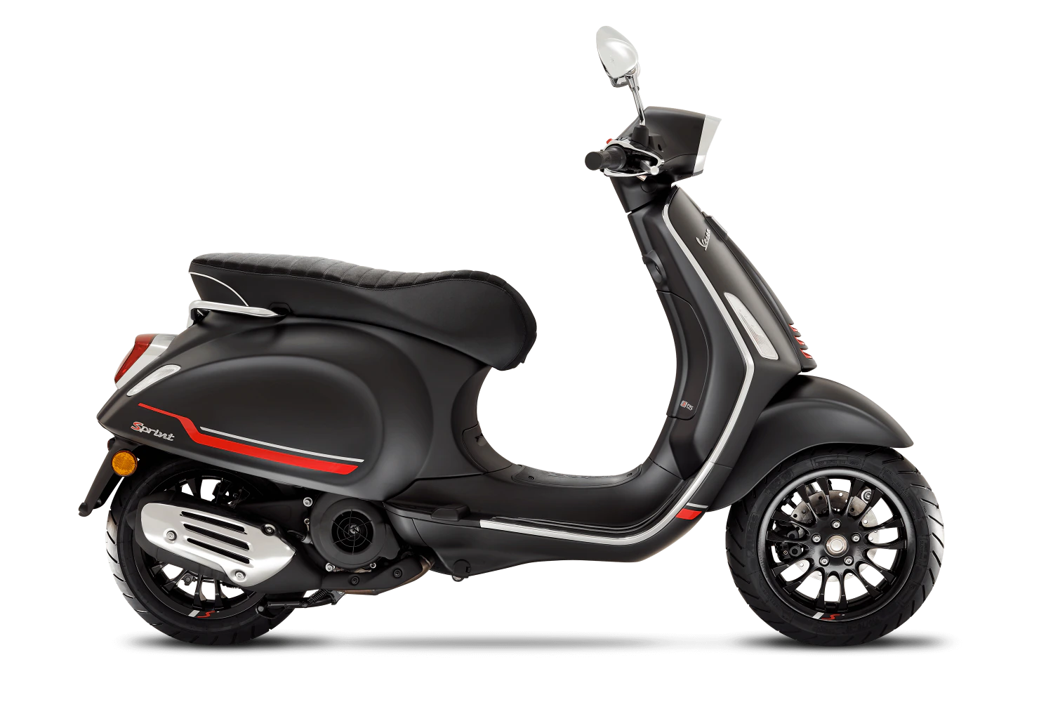 Haciendo el máximo alarde de sus características deportivas, la Vespa Sprint S 125 es definitivamente la versión más agresiva de la familia Vespa small body.